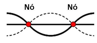 (1) Nós: Pontos que estão estacionários e com amplitude nula. Nos nós, duas ondas viajam exactamente a mesma amplitude e fora de frase que compensam com o outro. (Figura 2).